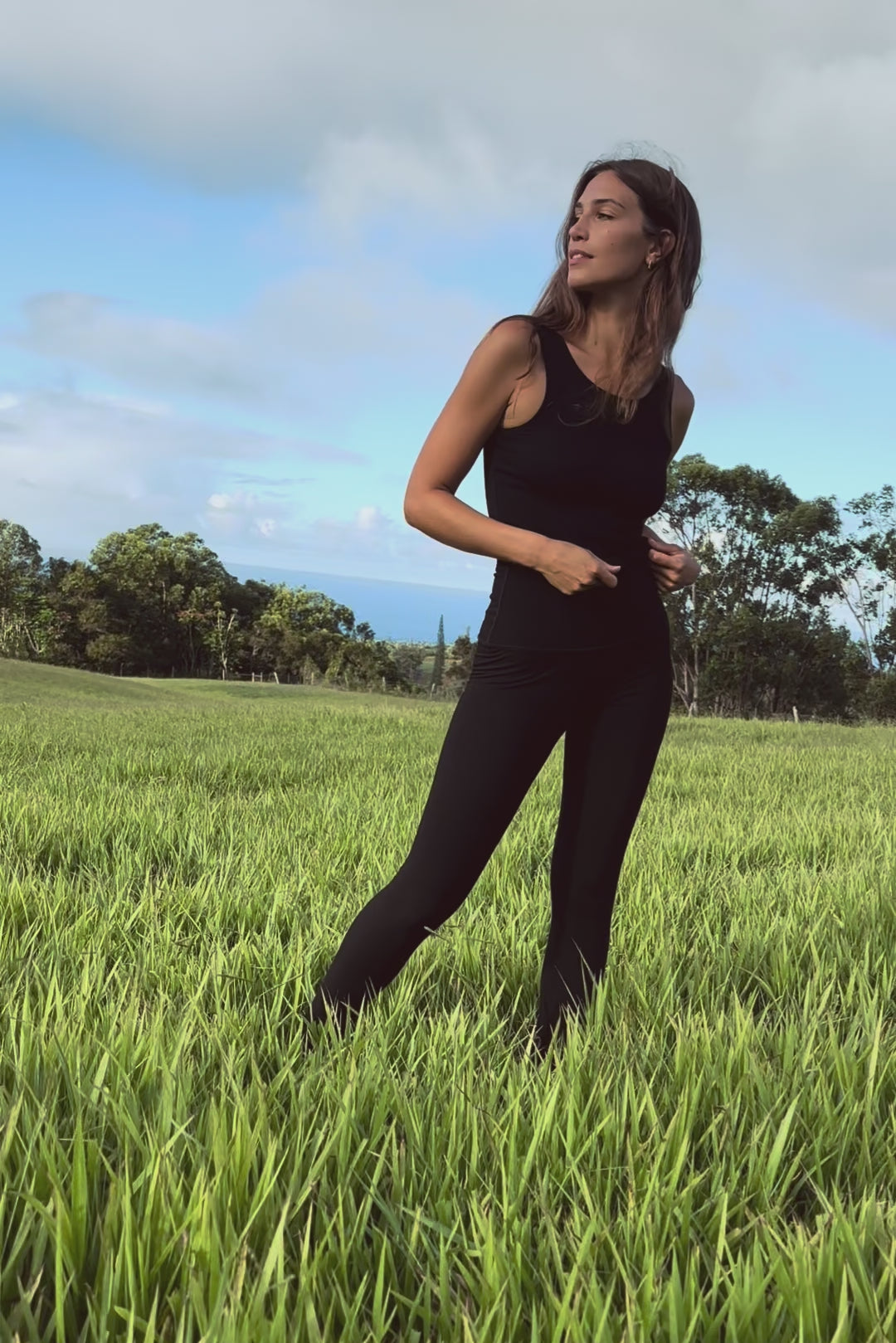 We use plant-based fabrics like TENCEL™ lyocell, ECOVERO™ viscose, and organic cotton, blended with Creora® bio-based spandex for gentle stretch. While the spandex still contains some petroleum, it’s partially derived from renewable sources—making it a better option than traditional synthetics. The result: soft, breathable, lower-impact clothing that feels as good as it is.