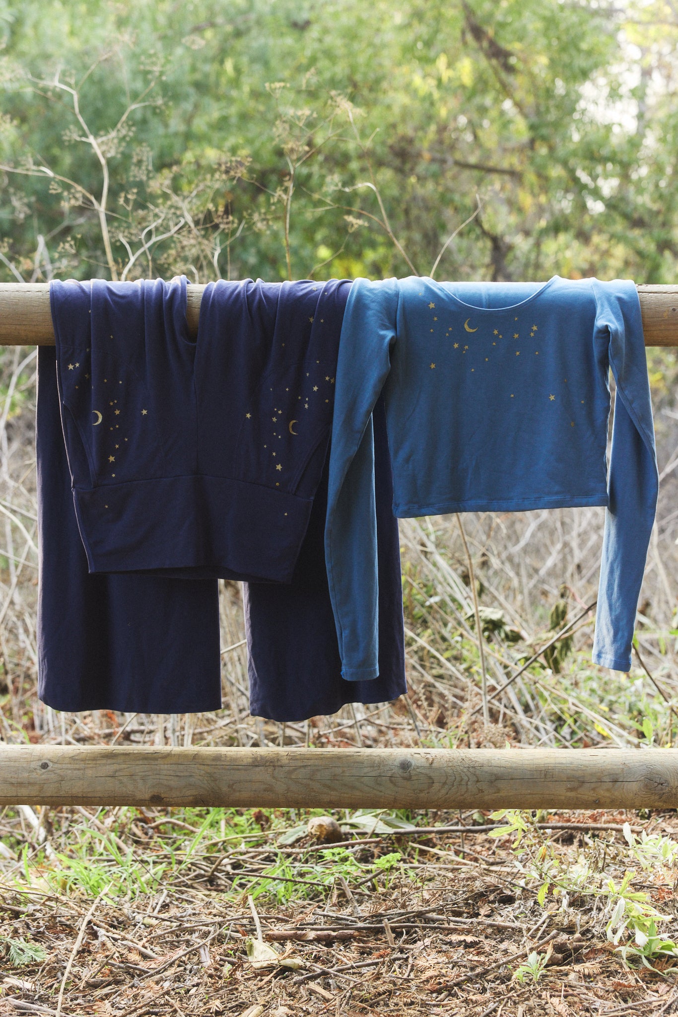 We use plant-based fabrics like TENCEL™ lyocell, ECOVERO™ viscose, and organic cotton, blended with Creora® bio-based spandex for gentle stretch. While the spandex still contains some petroleum, it’s partially derived from renewable sources—making it a better option than traditional synthetics. The result: soft, breathable, lower-impact clothing that feels as good as it is.