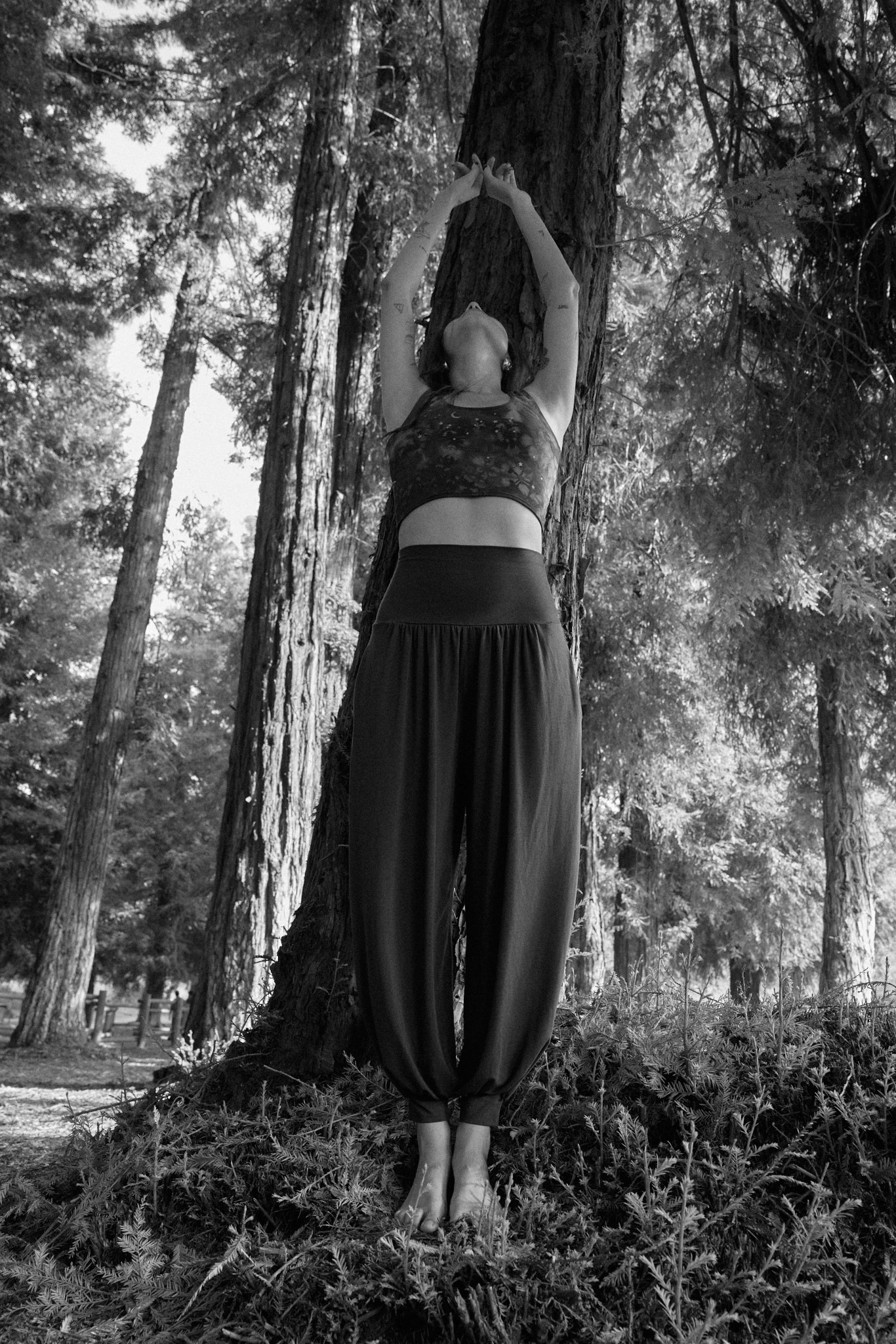 We use plant-based fabrics like TENCEL™ lyocell, ECOVERO™ viscose, and organic cotton, blended with Creora® bio-based spandex for gentle stretch. While the spandex still contains some petroleum, it’s partially derived from renewable sources—making it a better option than traditional synthetics. The result: soft, breathable, lower-impact clothing that feels as good as it is.