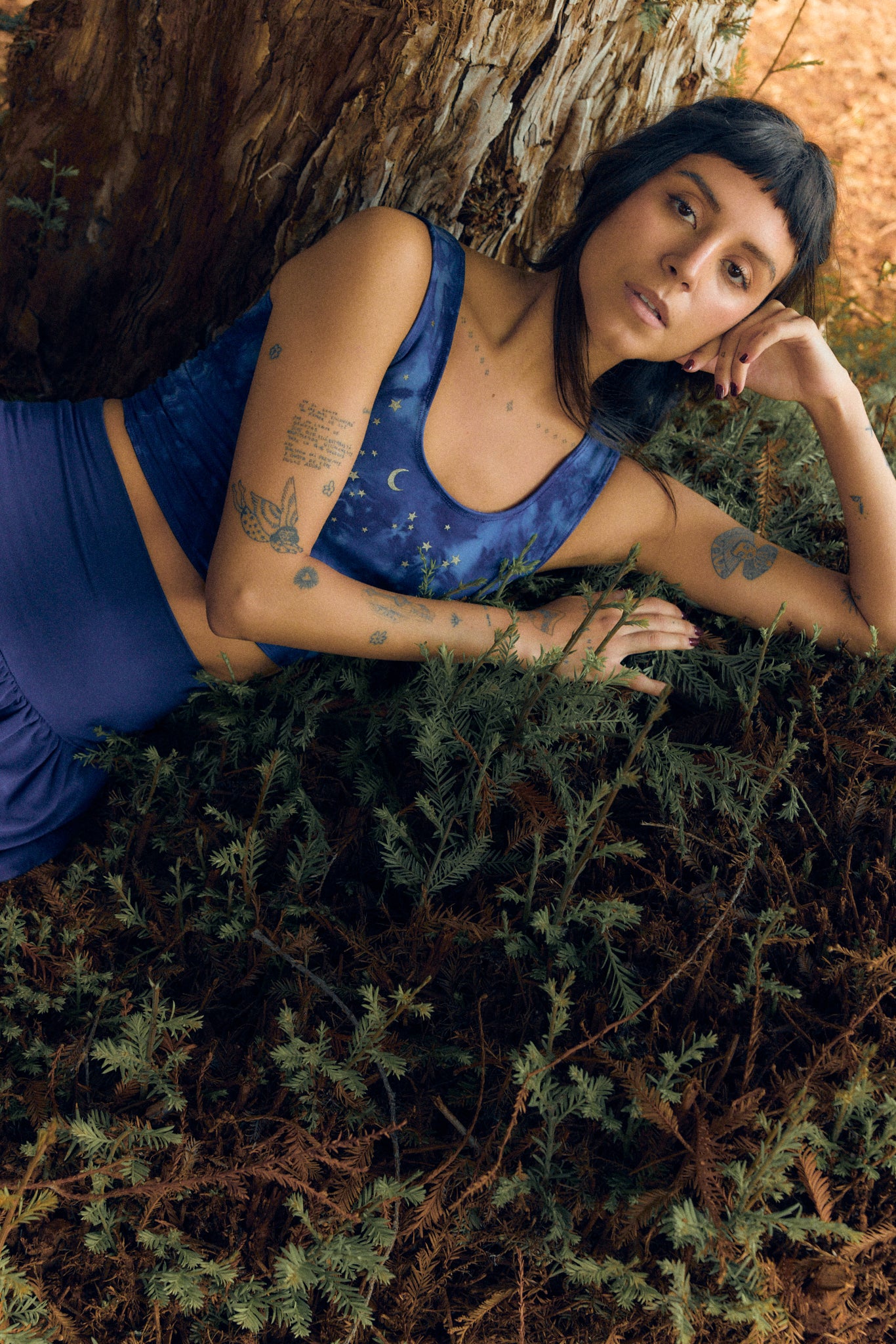 We knit our fabrics in Los Angeles, work with a GOTS-certified dye house, and print exclusively with water-based inks. Every design is created in collaboration with female artists, and all of our production partners are small, family-owned studios located within a 25-mile radius of downtown LA, bringing our vision to life with care and integrity.