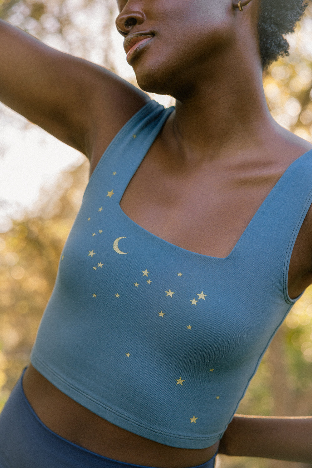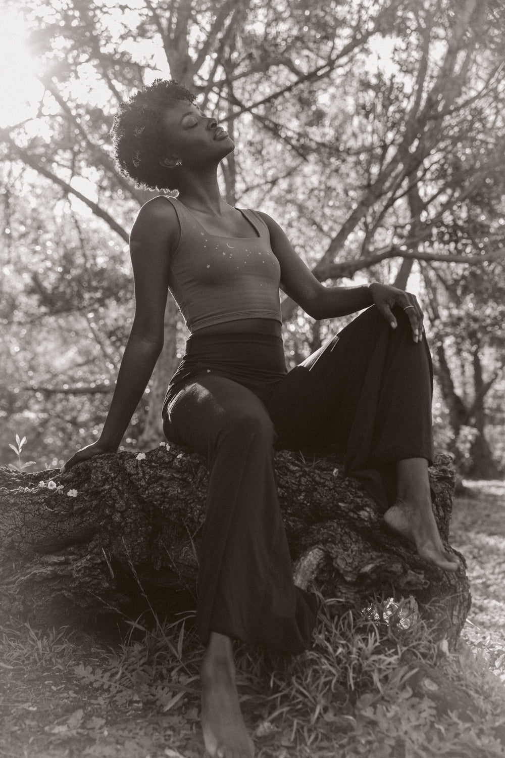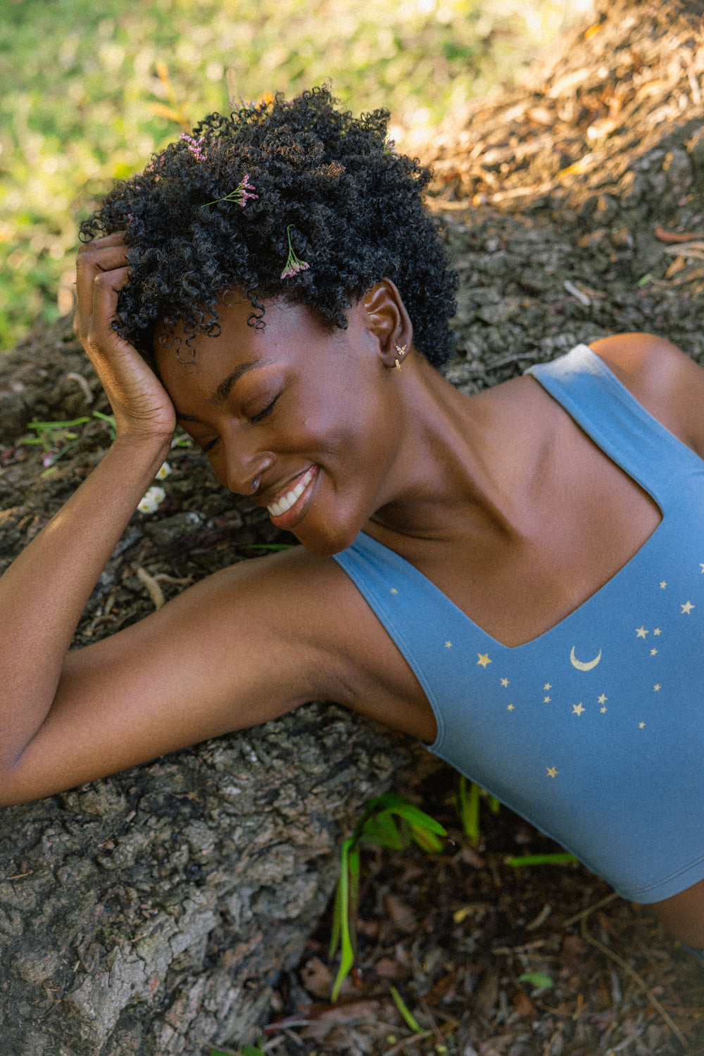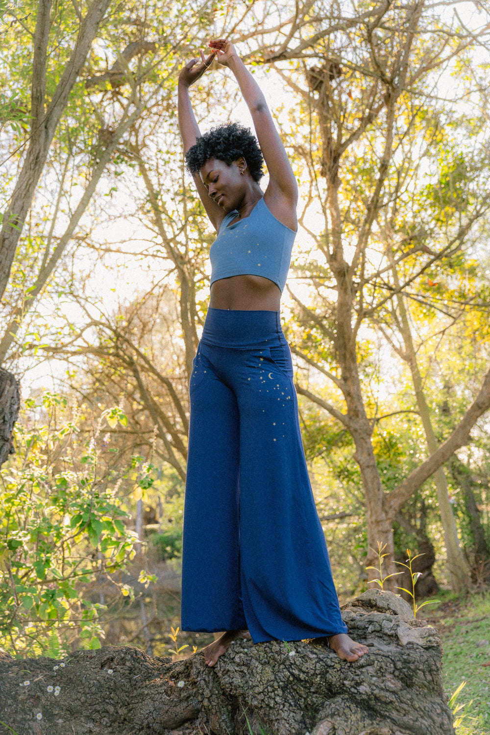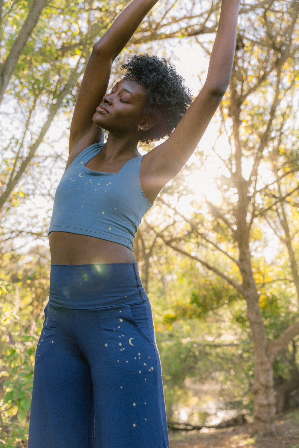We use plant-based fabrics like TENCEL™ lyocell, ECOVERO™ viscose, and organic cotton, blended with Creora® bio-based spandex for gentle stretch. While the spandex still contains some petroleum, it’s partially derived from renewable sources—making it a better option than traditional synthetics. The result: soft, breathable, lower-impact clothing that feels as good as it is.