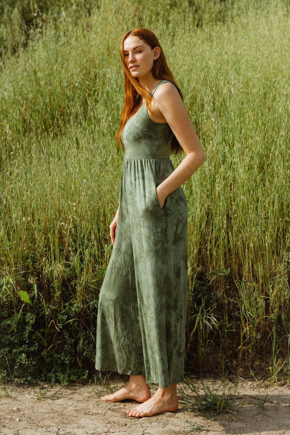 Every piece is made from premium, plant-based or naturally derived fibers selected for softness, breathability, and comfort. Many of our fabrics include TENCEL™ Siro lyocell or other sustainable blends made in small batches. Each garment is knit, cut, sewn, dyed, printed, and finished in Los Angeles, giving it that signature Purusha feel that is buttery, lived in, and completely unique.