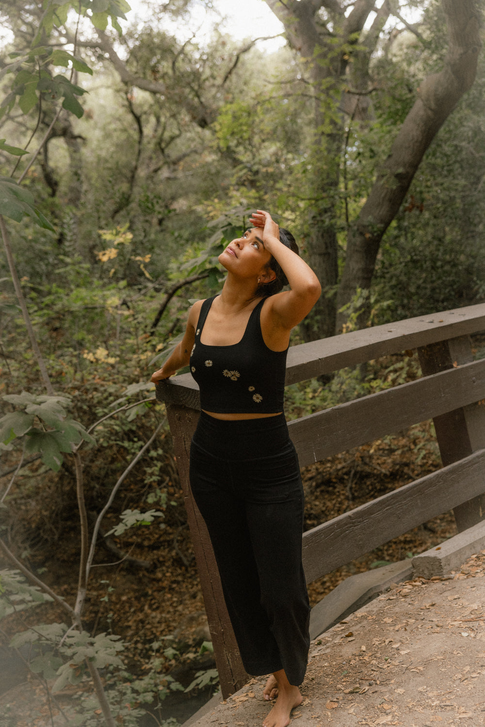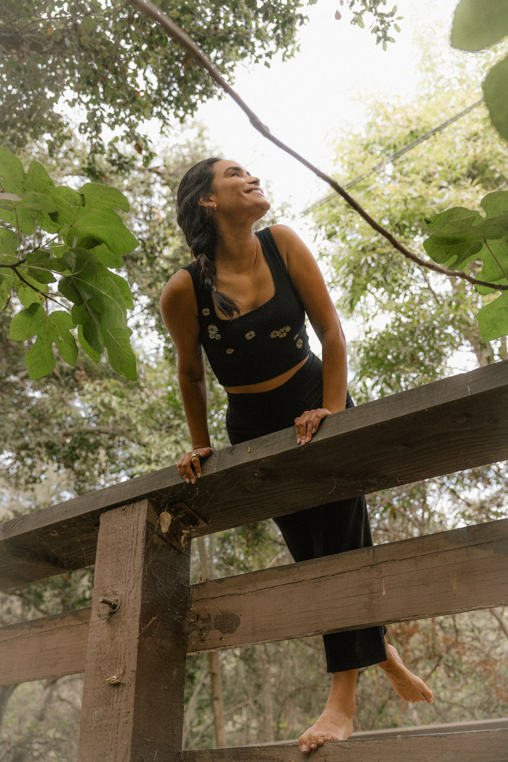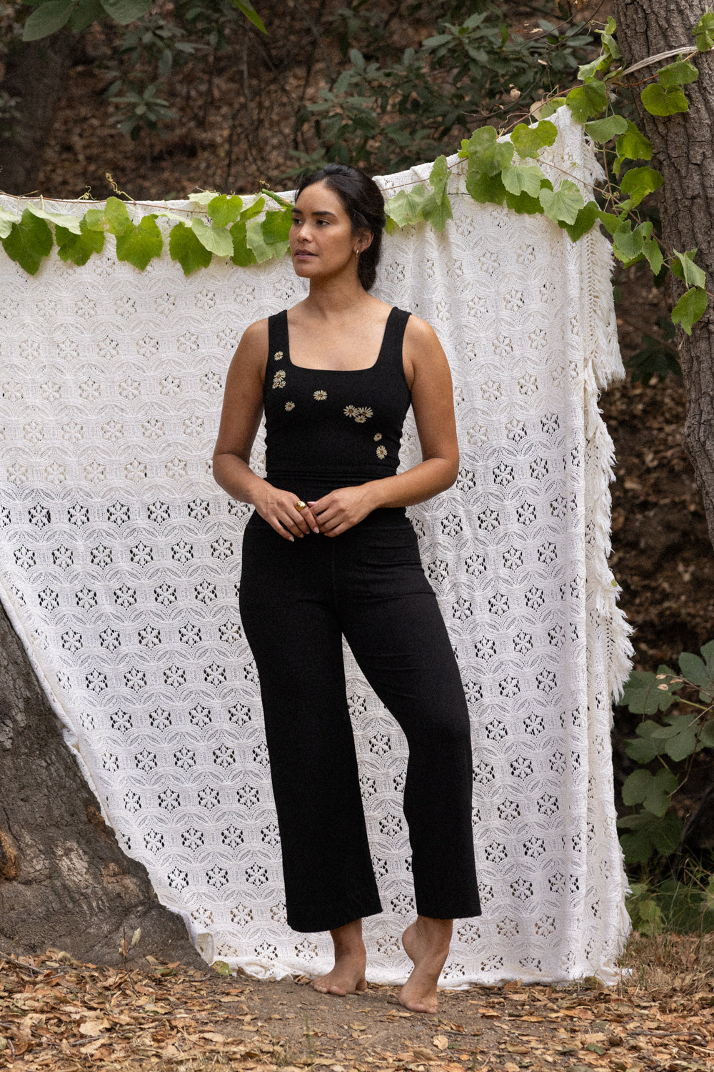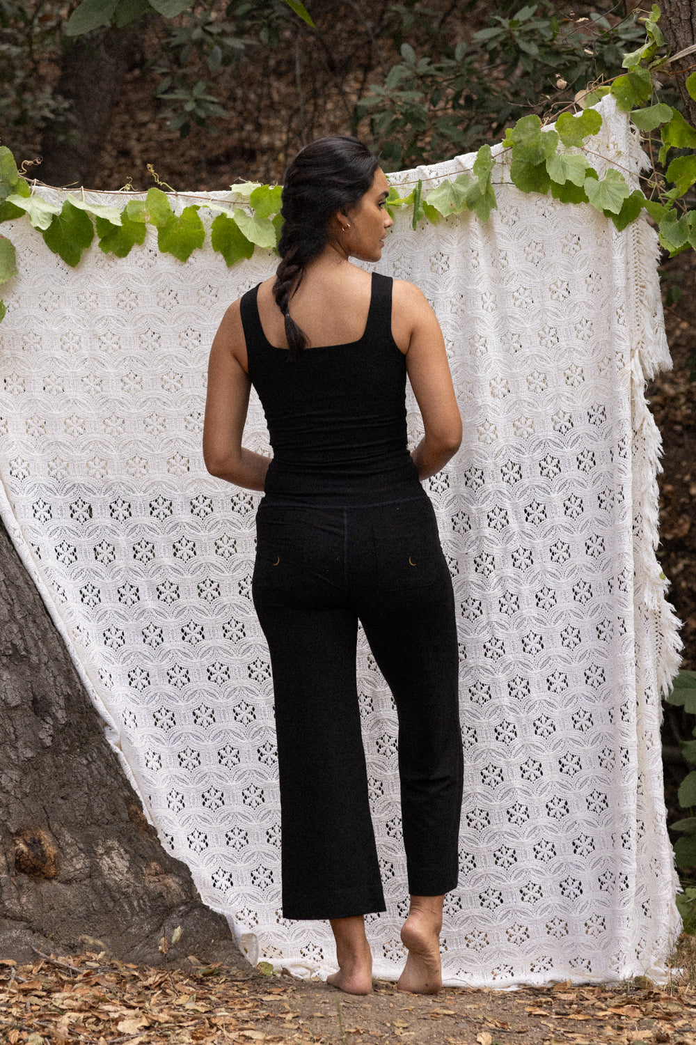 We use plant-based fabrics like TENCEL™ lyocell, ECOVERO™ viscose, and organic cotton, blended with Creora® bio-based spandex for gentle stretch. While the spandex still contains some petroleum, it’s partially derived from renewable sources—making it a better option than traditional synthetics. The result: soft, breathable, lower-impact clothing that feels as good as it is.