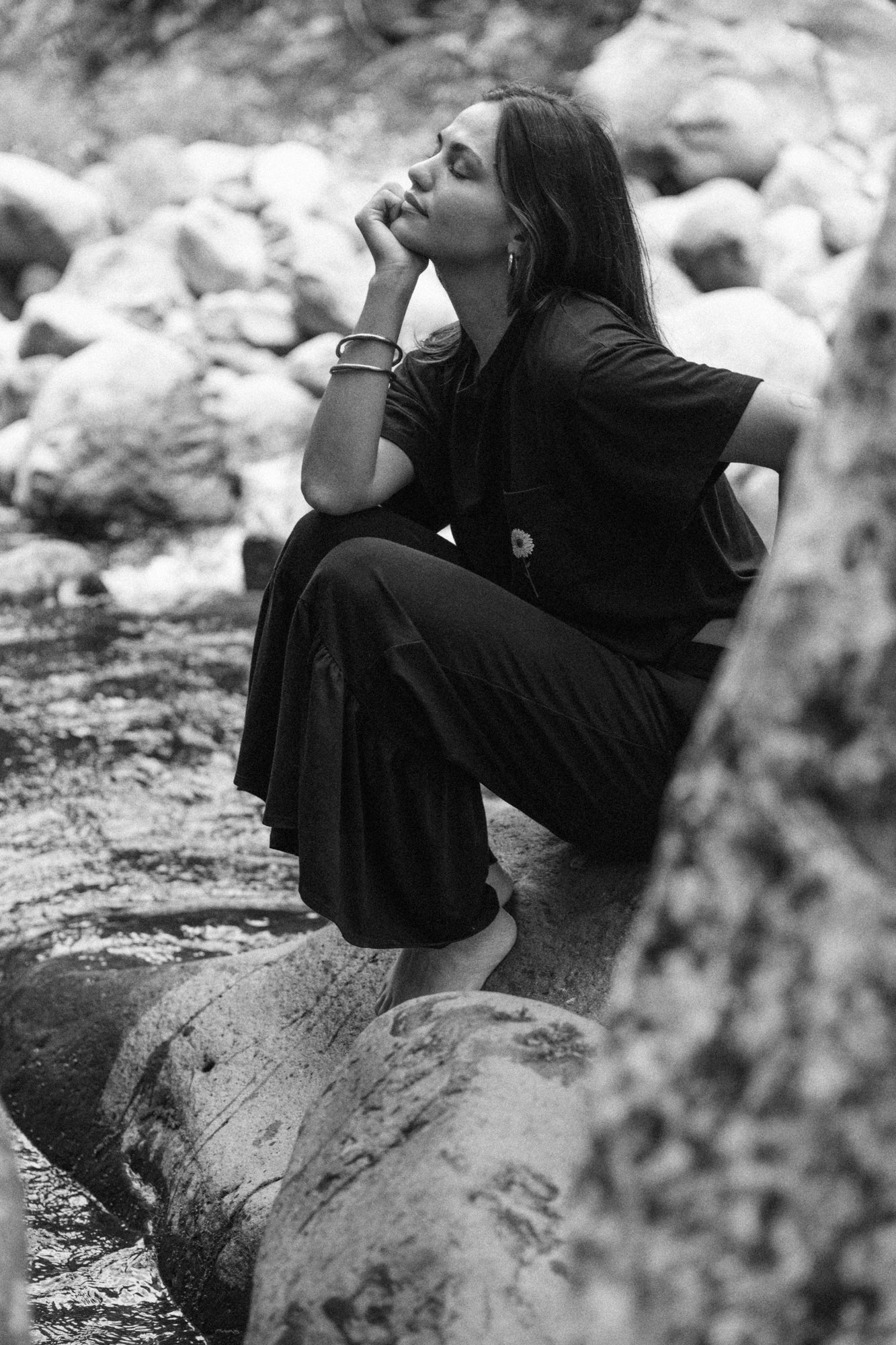 Every piece is made from premium, plant-based or naturally derived fibers selected for softness, breathability, and comfort. Many of our fabrics include TENCEL™ lyocell or other sustainable blends made in small batches. Each garment is dyed and finished in Los Angeles, giving it that signature Purusha feel that is buttery, lived in, and completely unique.