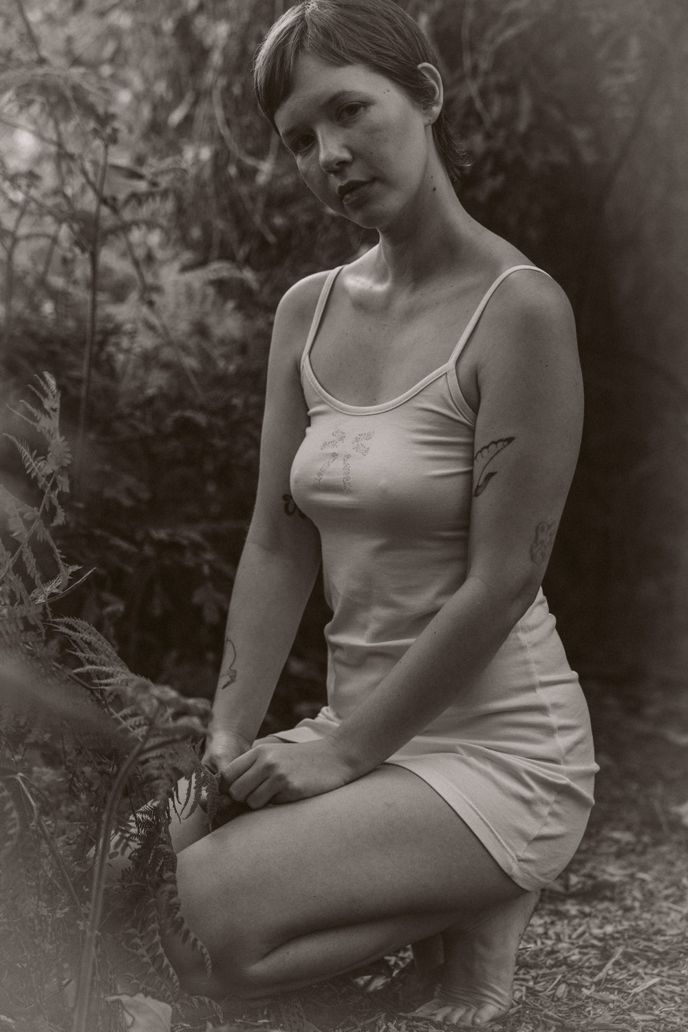 We knit our fabrics in Los Angeles, work with a GOTS-certified dye house, and print exclusively with water-based inks. Every design is created in collaboration with female artists, and all of our production partners are small, family-owned studios located within a 25-mile radius of downtown LA, bringing our vision to life with care and integrity.
