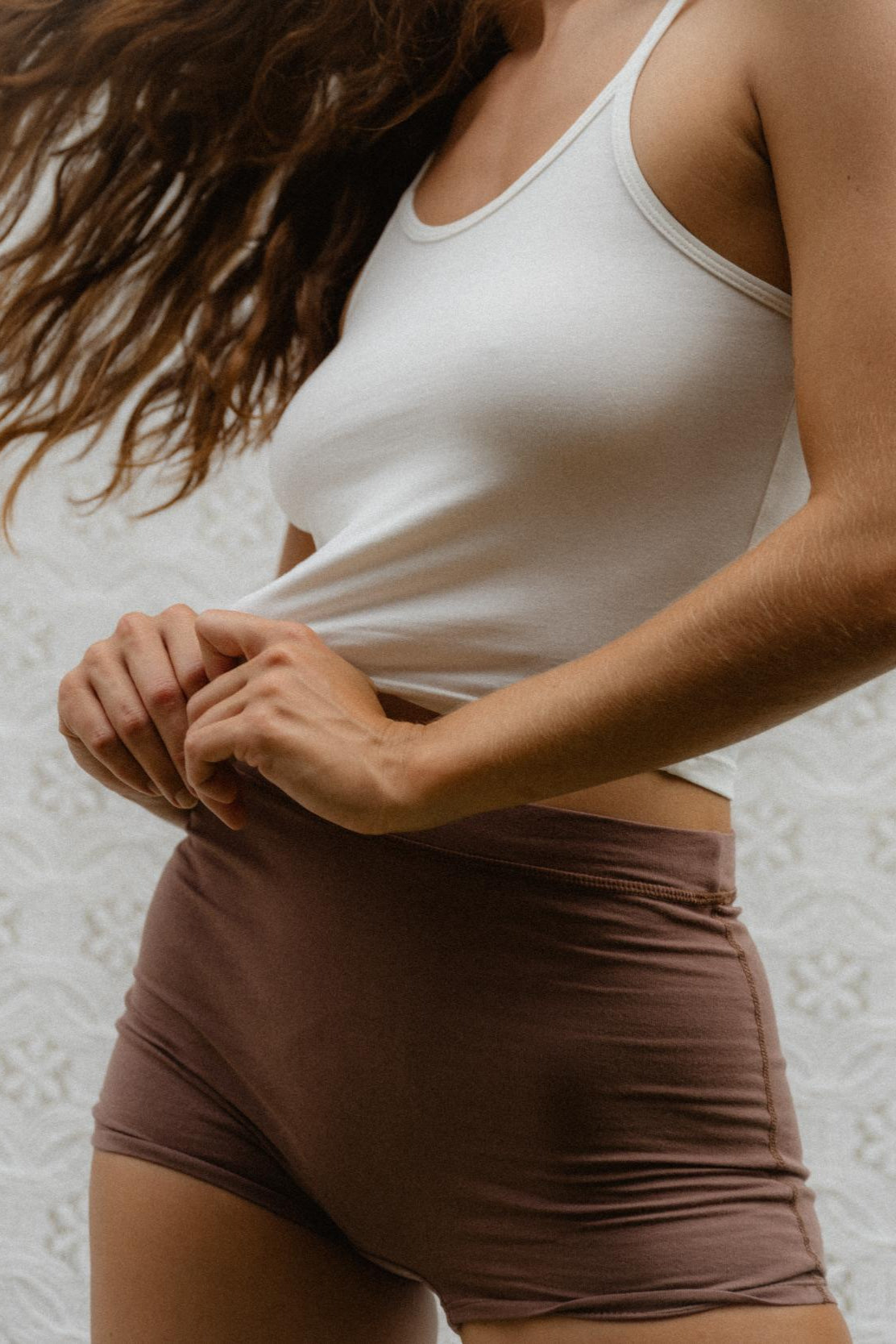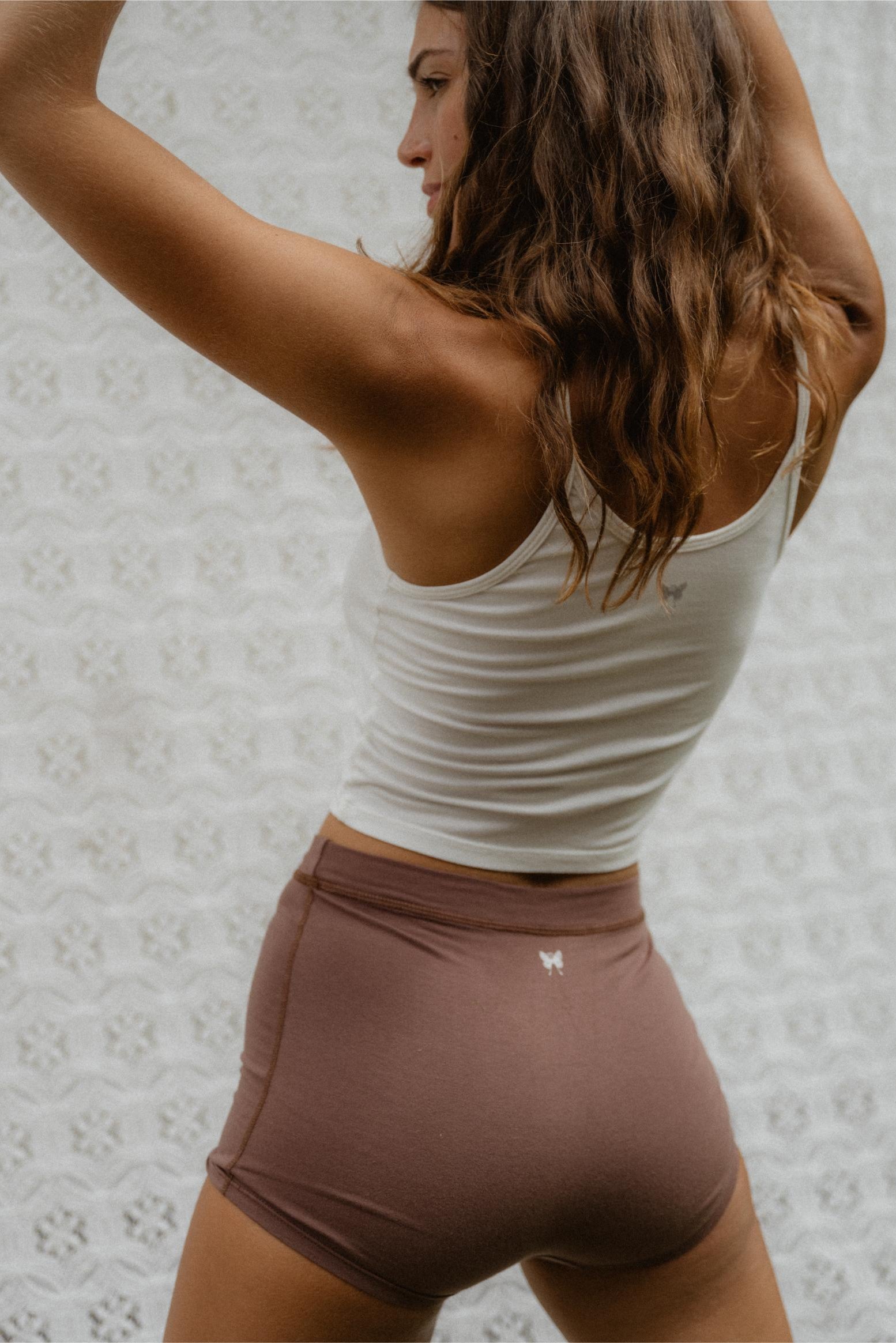 We use plant-based fabrics like TENCEL™ lyocell, ECOVERO™ viscose, and organic cotton, blended with Creora® bio-based spandex for gentle stretch. While the spandex still contains some petroleum, it’s partially derived from renewable sources—making it a better option than traditional synthetics. The result: soft, breathable, lower-impact clothing that feels as good as it is.