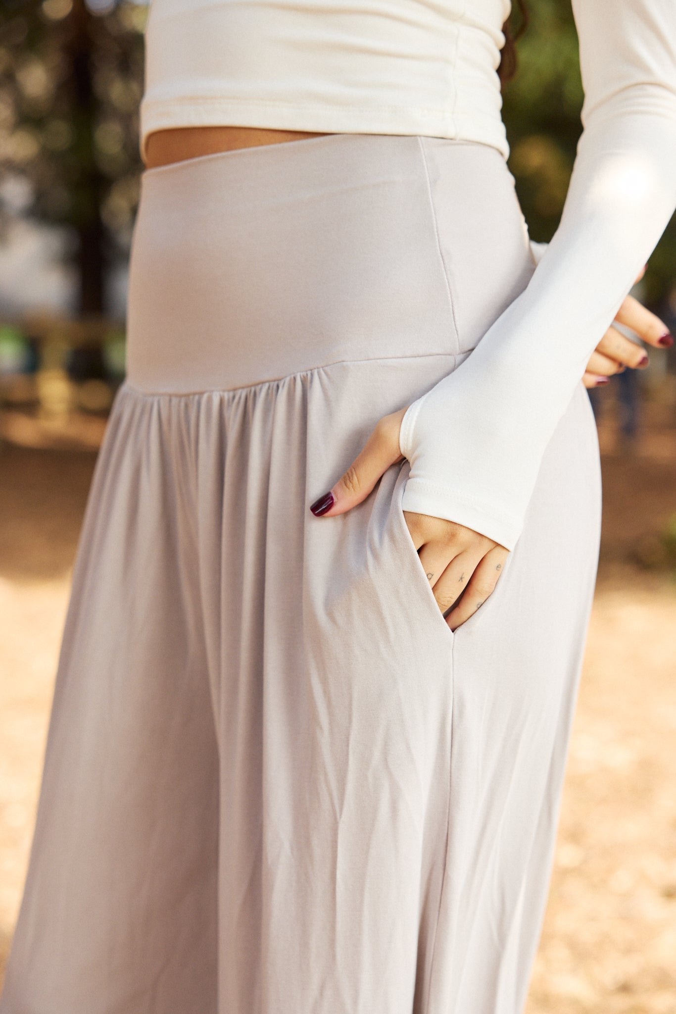 ✿ Double layered waistband, pockets at hips, wide leg with cuffs at bottom