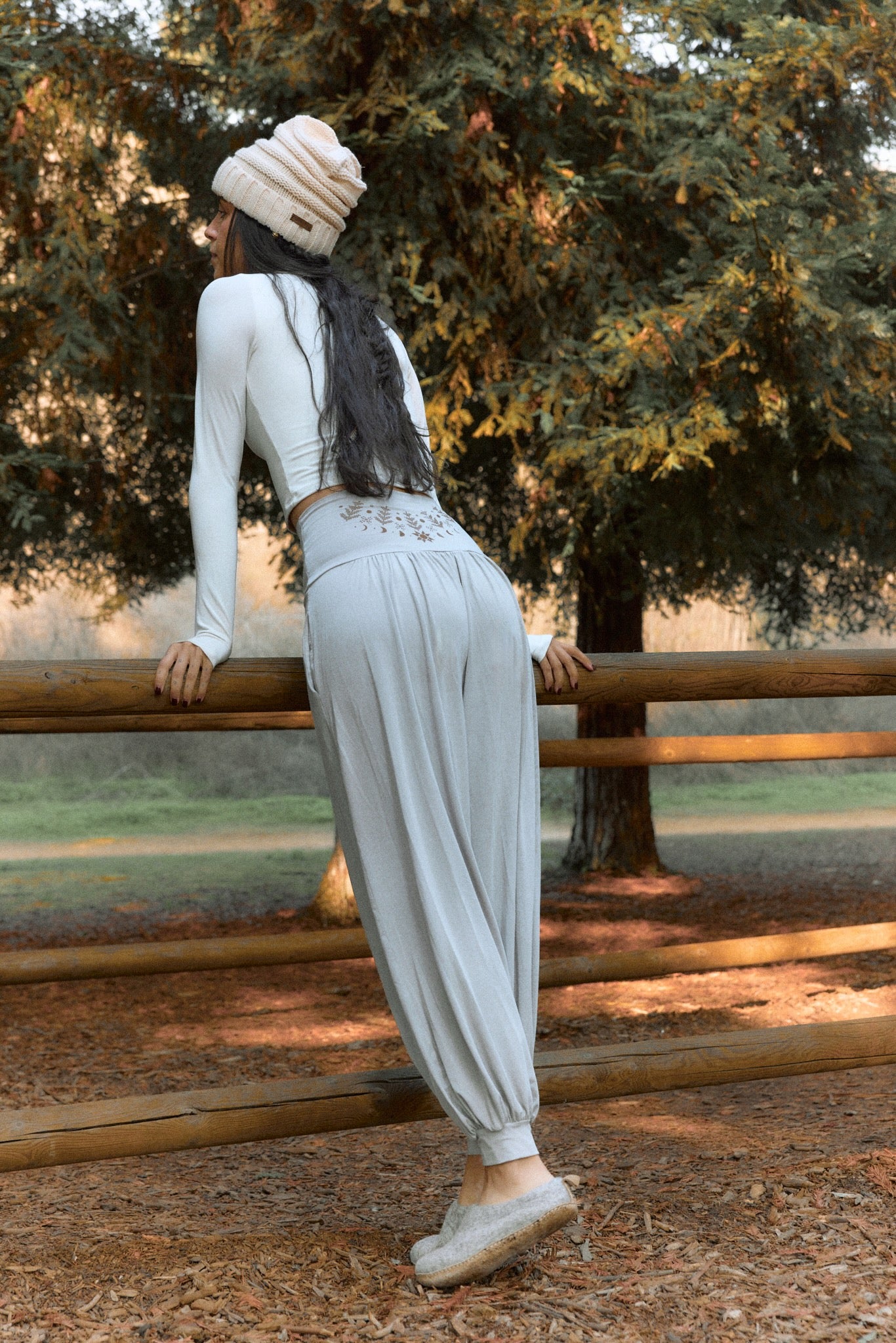 We use plant-based fabrics like TENCEL™ lyocell, ECOVERO™ viscose, and organic cotton, blended with Creora® bio-based spandex for gentle stretch. While the spandex still contains some petroleum, it’s partially derived from renewable sources—making it a better option than traditional synthetics. The result: soft, breathable, lower-impact clothing that feels as good as it is.