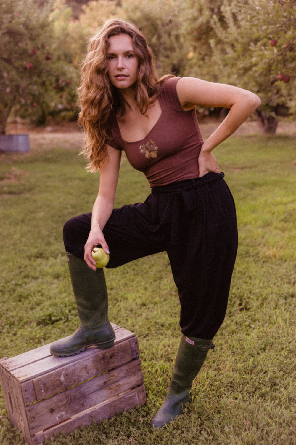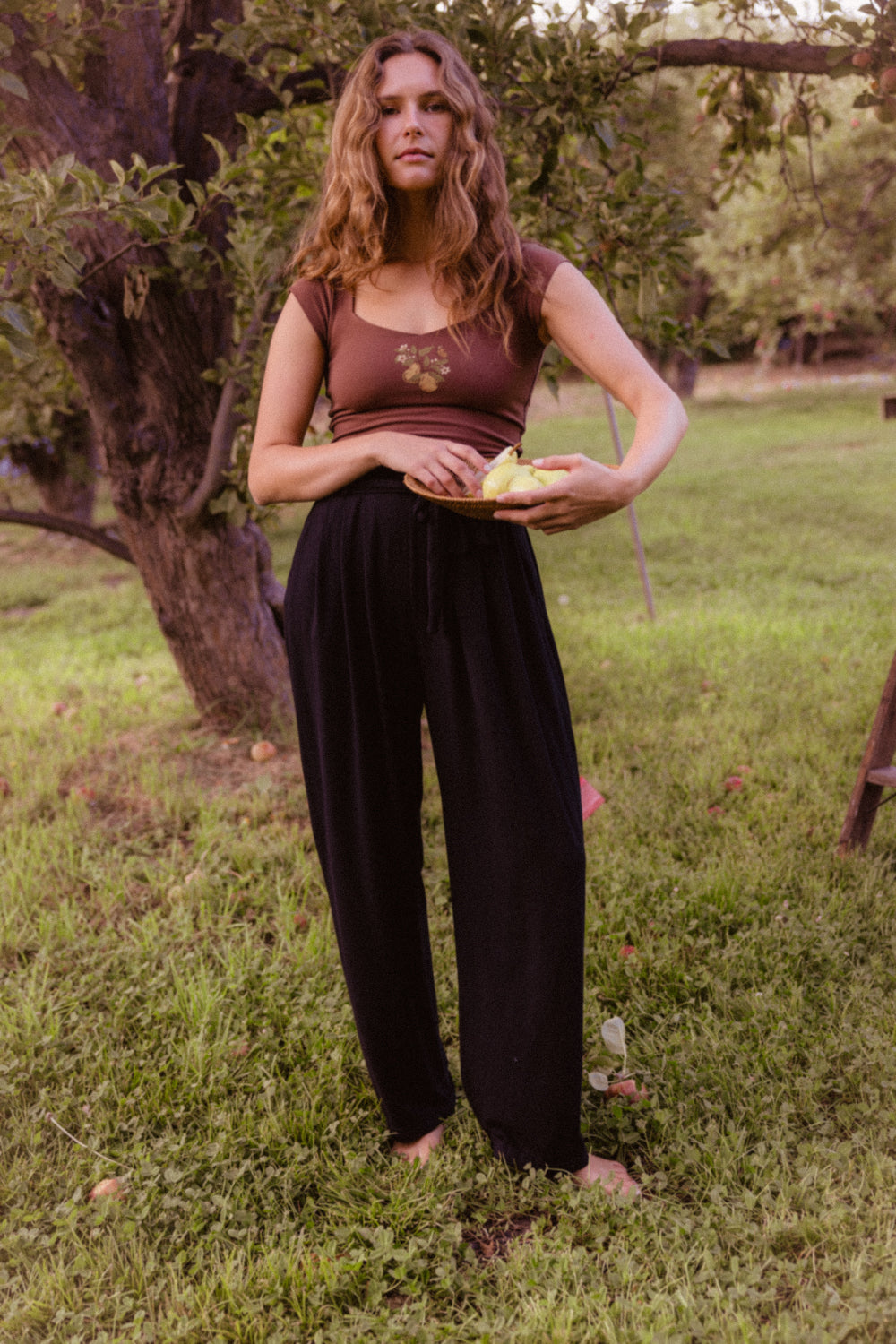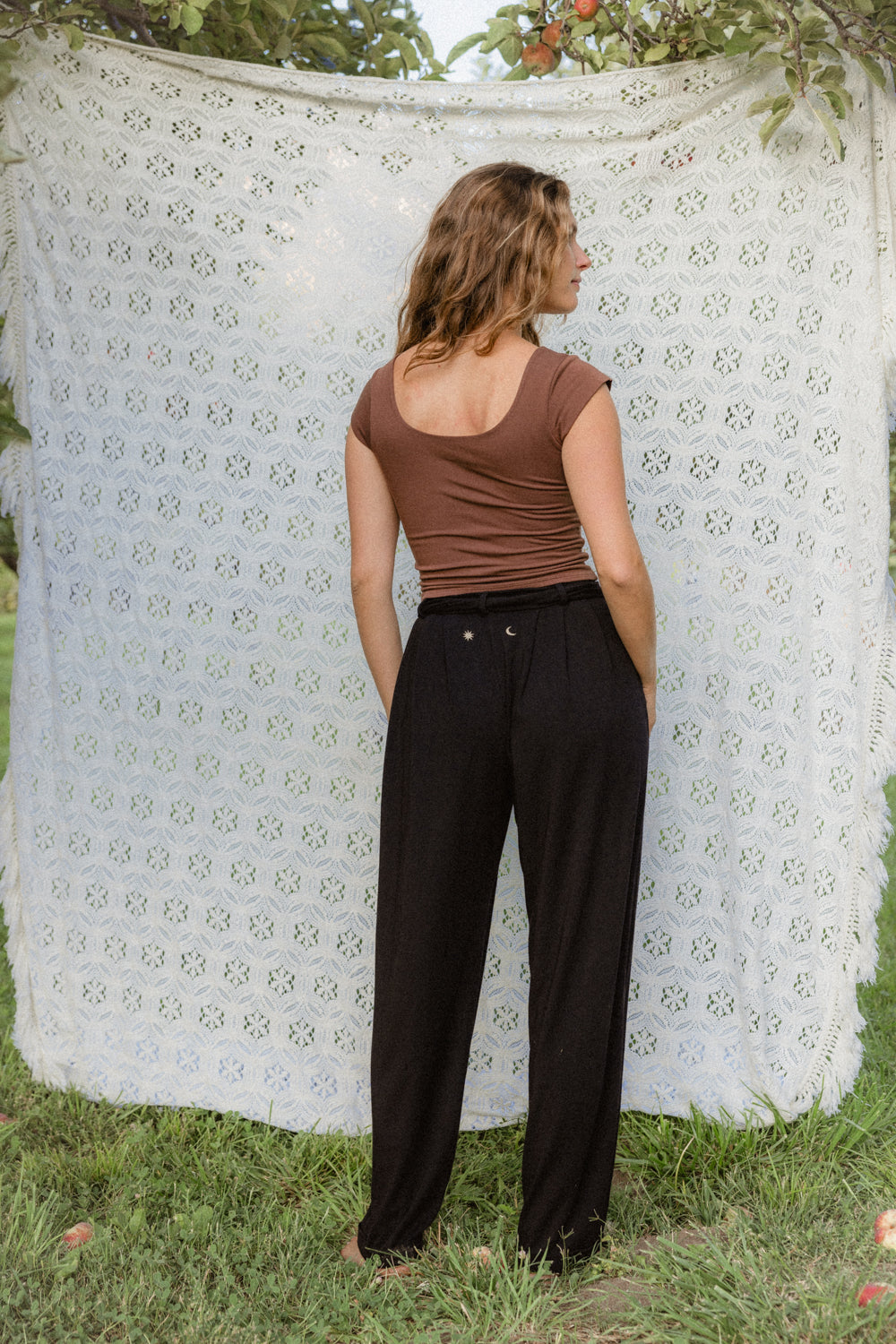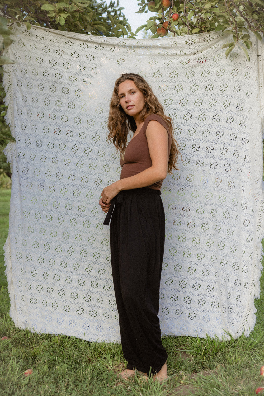 Every piece is made from premium, plant-based or naturally derived fibers selected for softness, breathability, and comfort. Many of our fabrics include TENCEL™ lyocell or other sustainable blends made in small batches. Each garment is dyed and finished in Los Angeles, giving it that signature Purusha feel that is buttery, lived in, and completely unique.