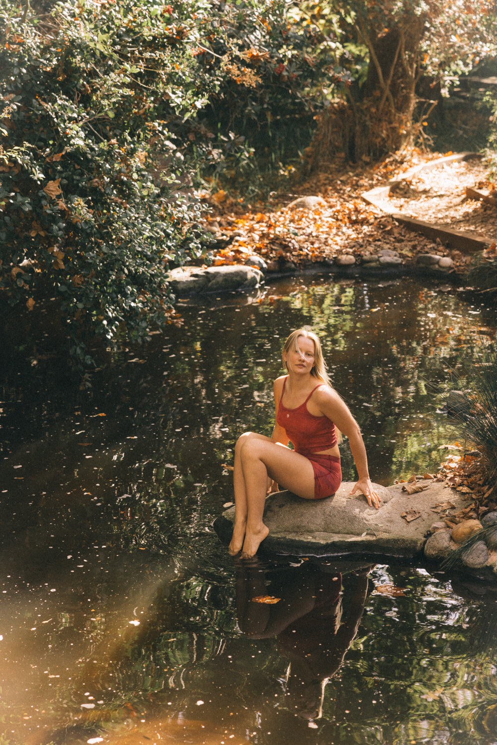 We knit our fabrics in Los Angeles, work with a GOTS-certified dye house, and print exclusively with water-based inks. Every design is created in collaboration with female artists, and all of our production partners are small, family-owned studios located within a 25-mile radius of downtown LA, bringing our vision to life with care and integrity.