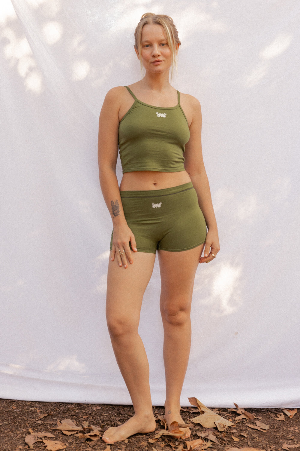 We use plant-based fabrics like TENCEL™ lyocell, ECOVERO™ viscose, and organic cotton, blended with Creora® bio-based spandex for gentle stretch. While the spandex still contains some petroleum, it’s partially derived from renewable sources—making it a better option than traditional synthetics. The result: soft, breathable, lower-impact clothing that feels as good as it is.