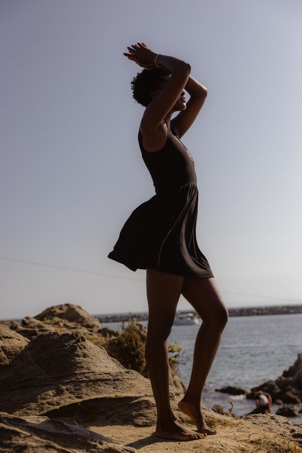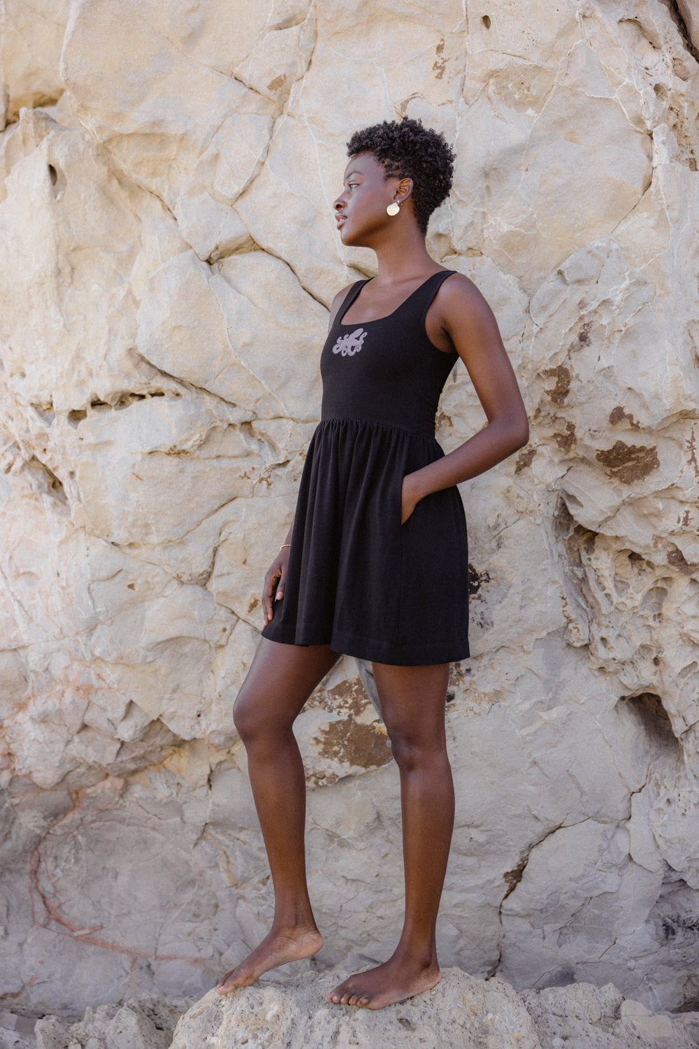 The Square Neck Mini Dress is short, sweet, and ready for anything. With a double-layered top for comfy coverage, hip pockets for tiny treasures, and a flirty length that keeps things light—it's playful, practical, and made to move.