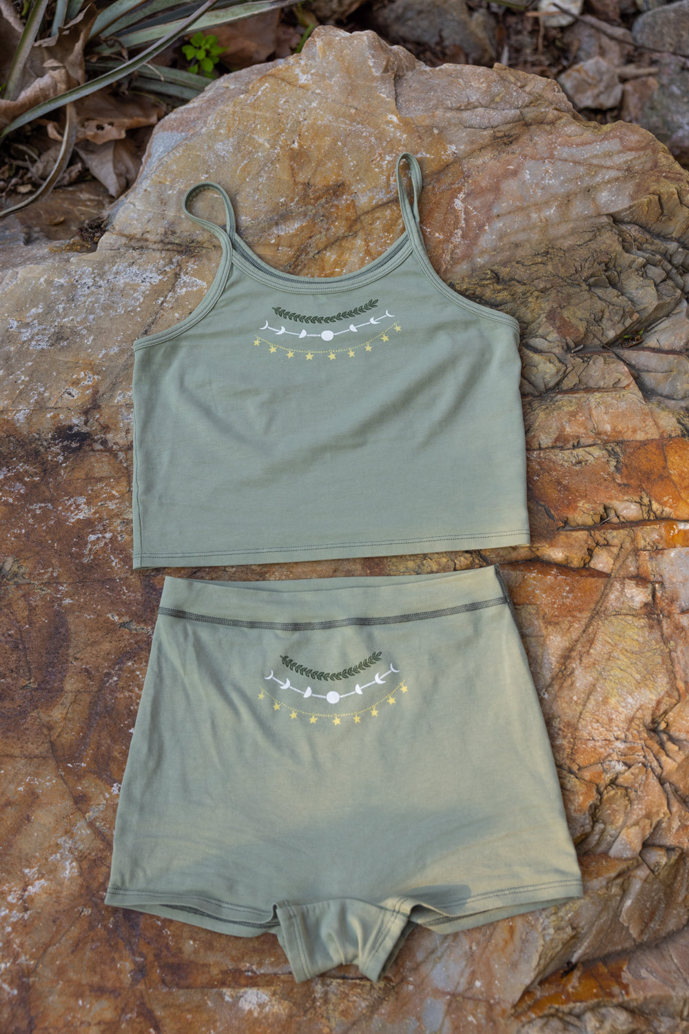 ✿ 92% organic cotton, 8% bio-based spandex (made from corn!), GOTS-certified nontoxic and metal-free dyes, water-based ink, and lots of love!