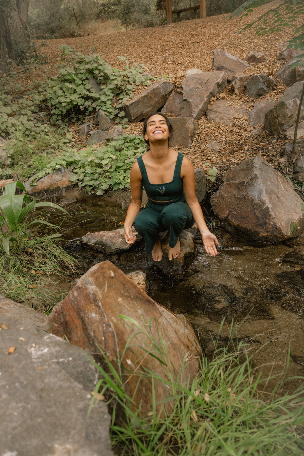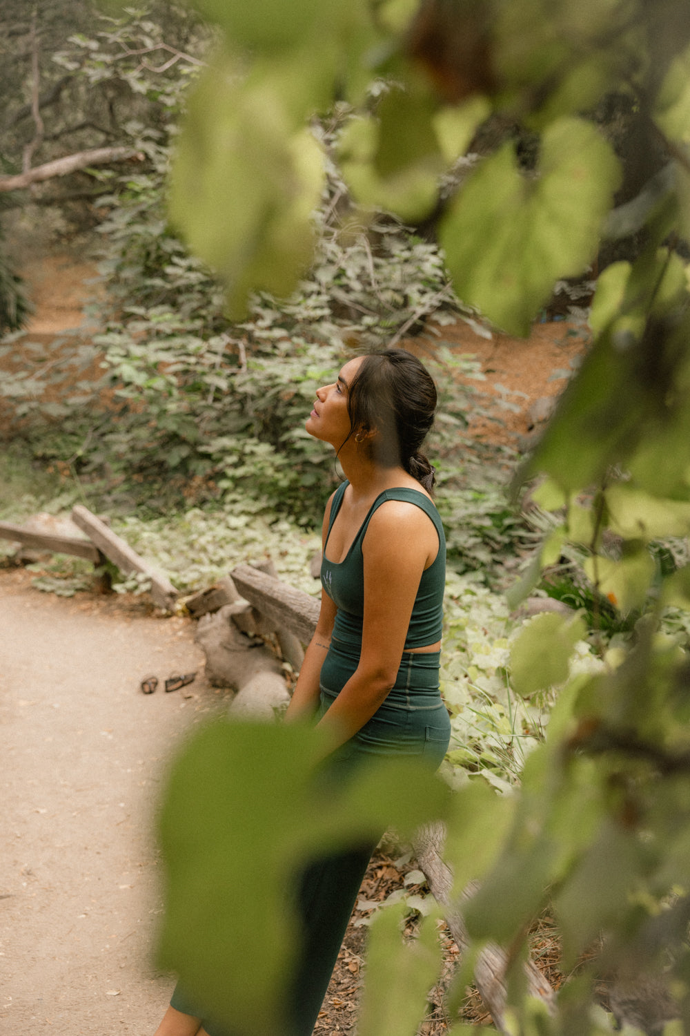 We use plant-based fabrics like TENCEL™ lyocell, ECOVERO™ viscose, and organic cotton, blended with Creora® bio-based spandex for gentle stretch. While the spandex still contains some petroleum, it’s partially derived from renewable sources—making it a better option than traditional synthetics. The result: soft, breathable, lower-impact clothing that feels as good as it is.